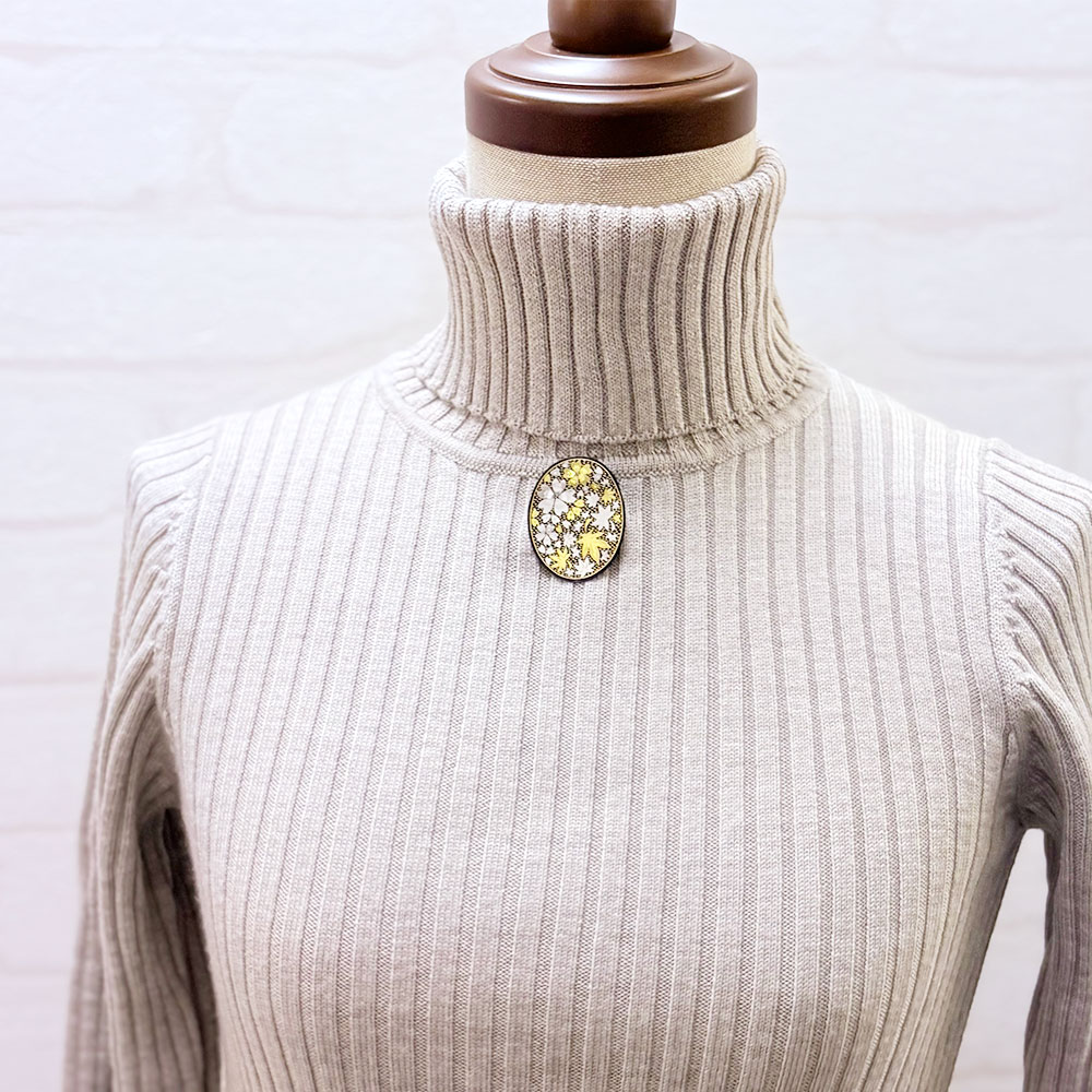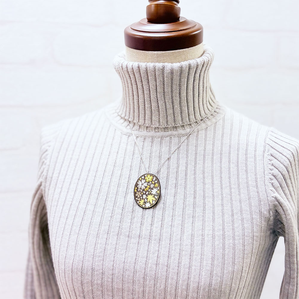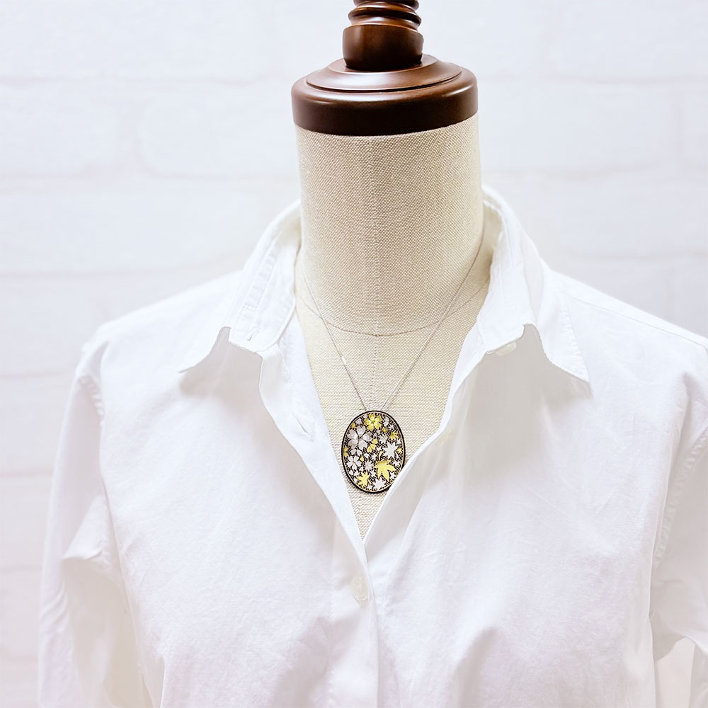 TV(テレビ東京)【ニッポン神ワザ職人名鑑】で紹介された ペンダントブローチ 小判型 総嵌 桜・紅葉(Mix)
