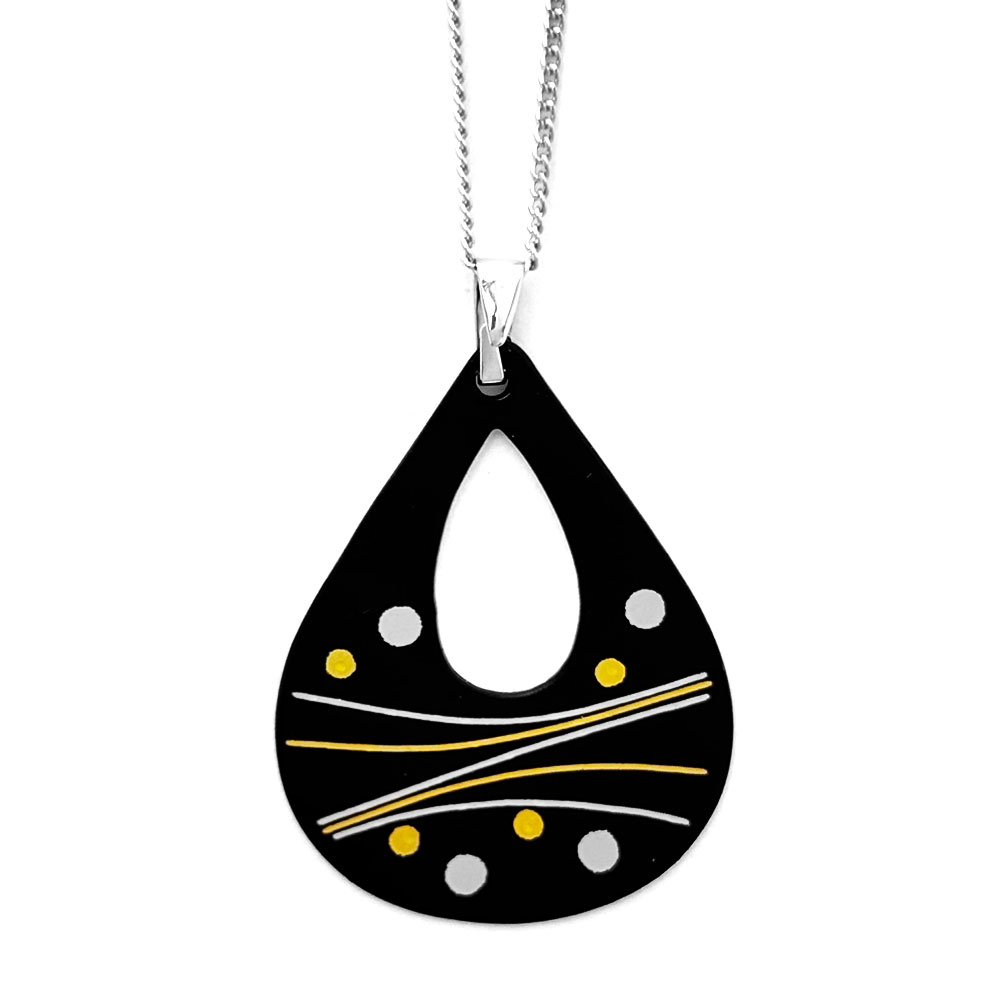 ペンダント 中抜き雫型 総嵌 銀杏・ラインドット(Mix)