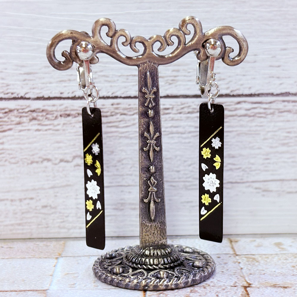 耳元のアクセントに象嵌イヤリング。