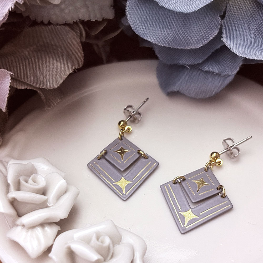ダイヤが2つ連なったようなゆらゆら揺れるピアス。