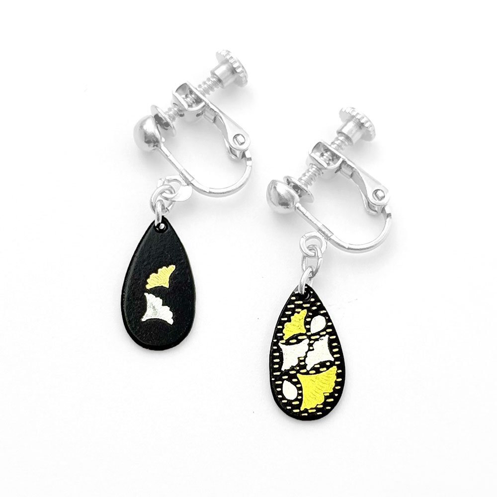 イヤリング 雫型 総嵌 小粒 銀杏・銀杏(Mix)