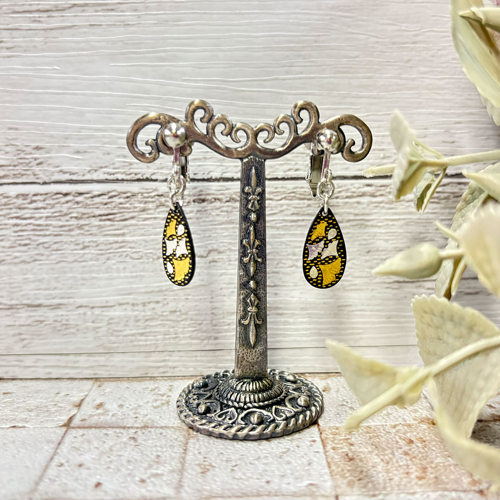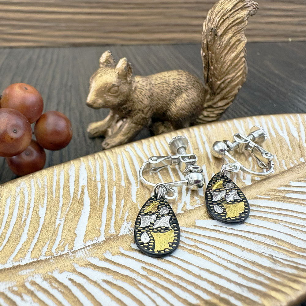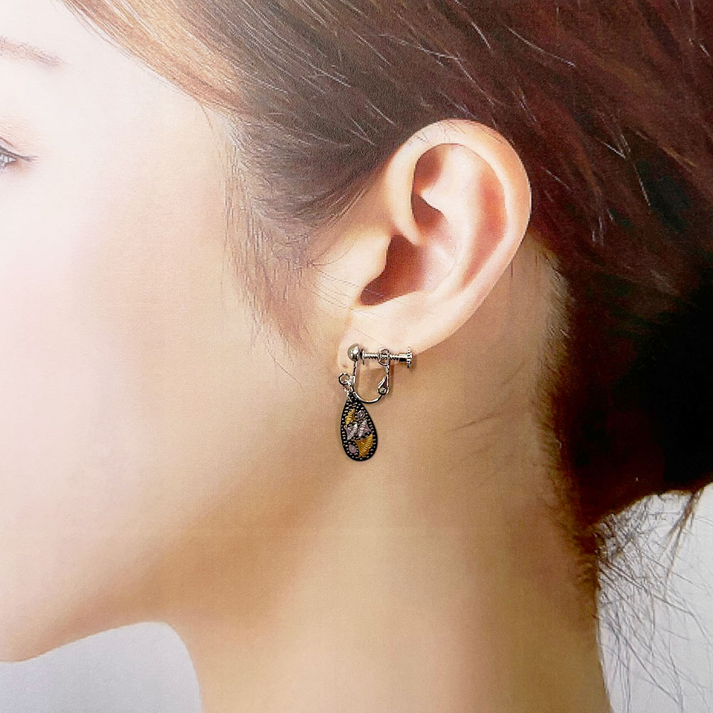 耳元のアクセントに象嵌イヤリング。
