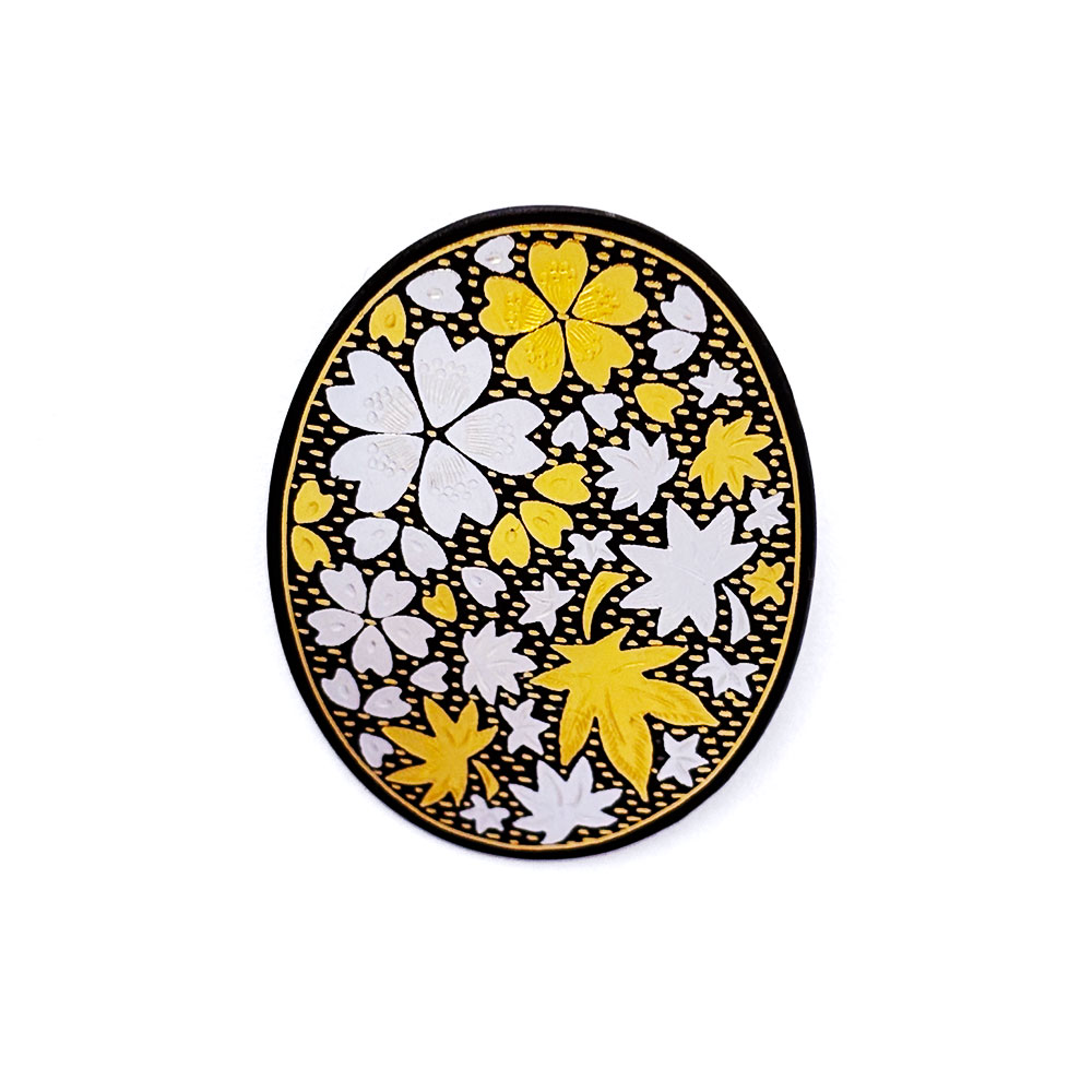 TV(テレビ東京)【ニッポン神ワザ職人名鑑】で紹介された ペンダントブローチ 小判型 総嵌 桜・紅葉(Mix)