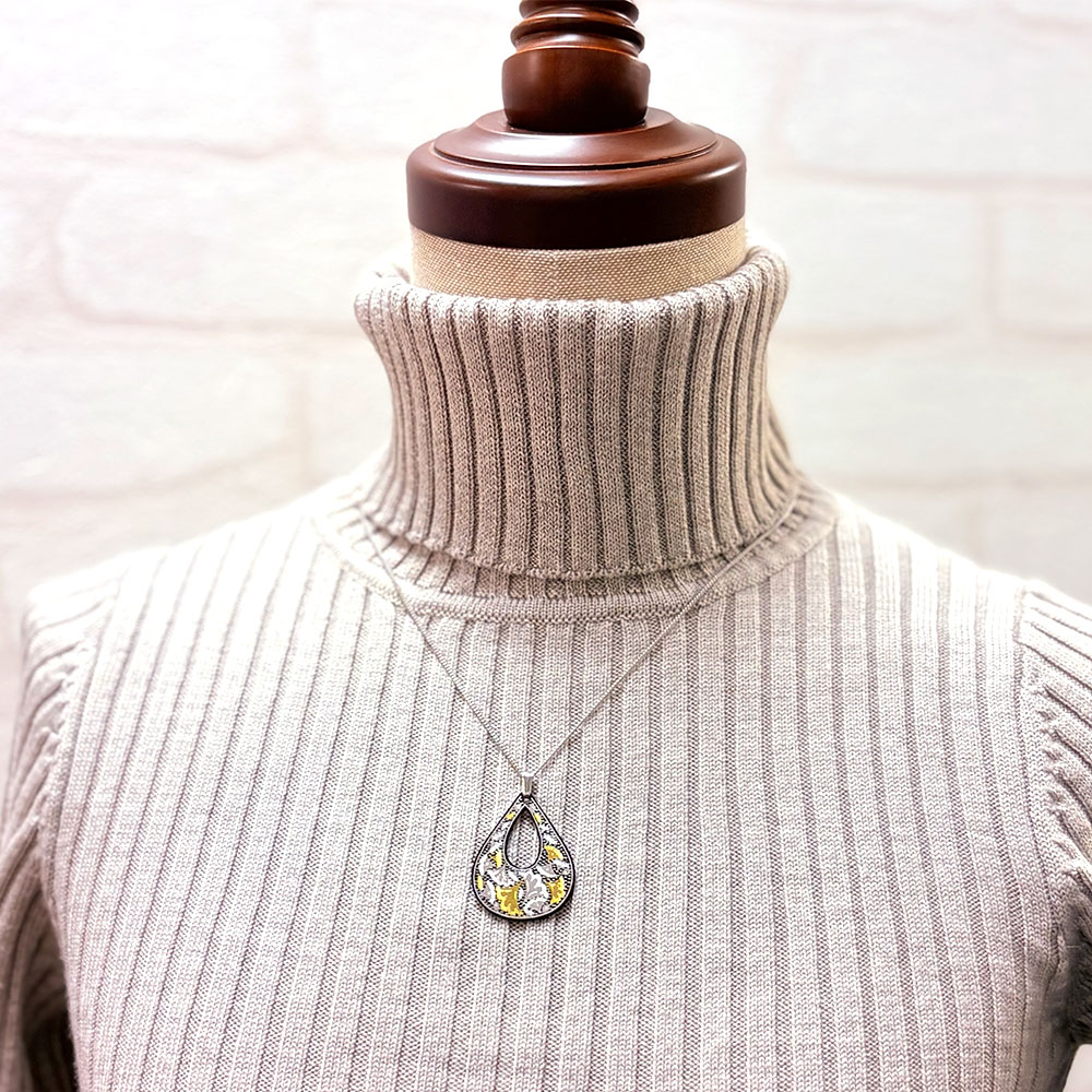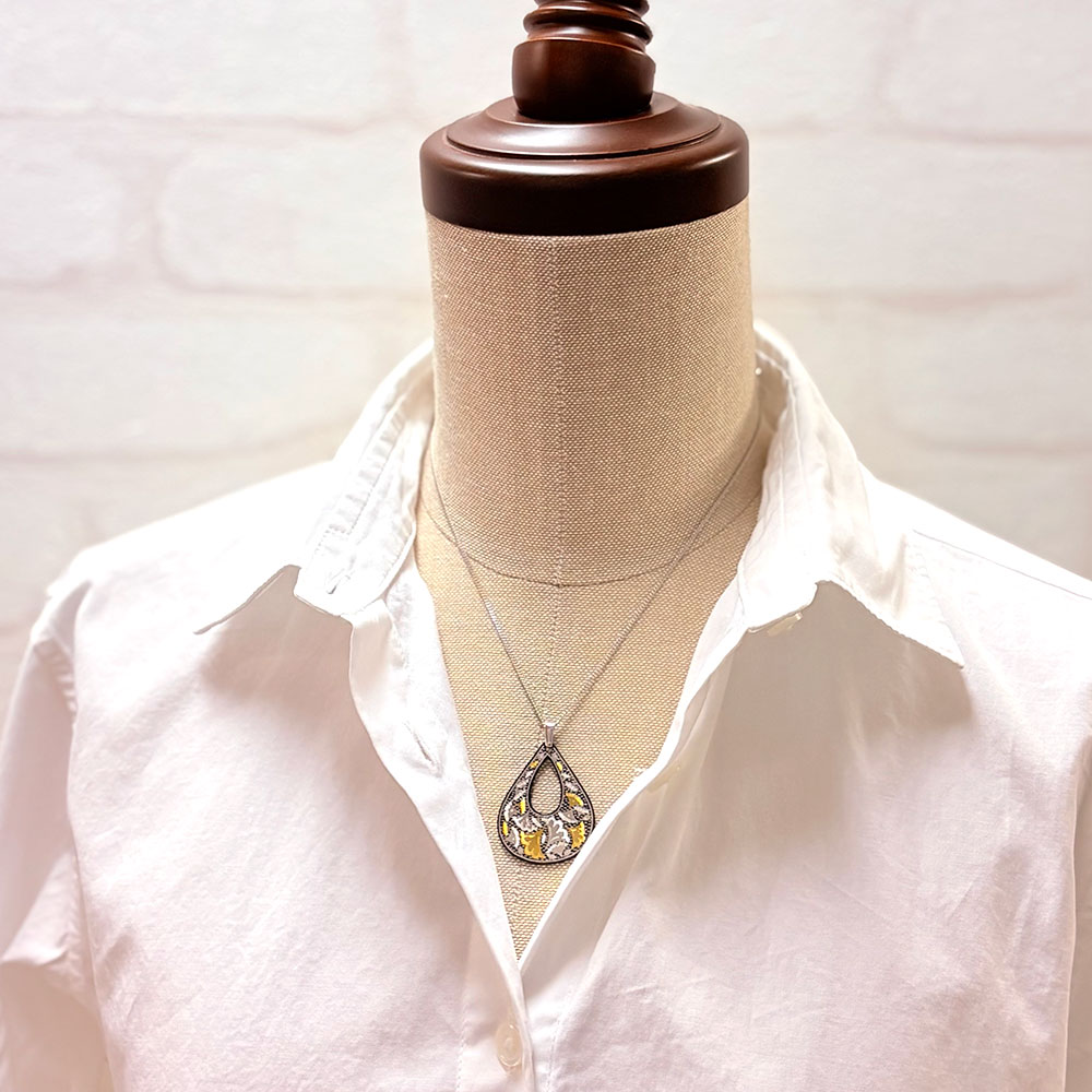 ペンダント 中抜き雫型 総嵌 銀杏・ラインドット(Mix)