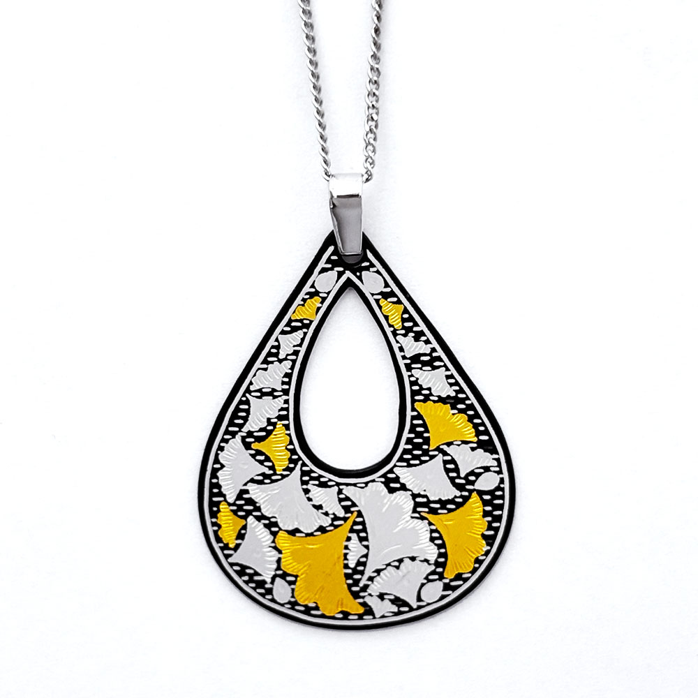 ペンダント 中抜き雫型 総嵌 銀杏・ラインドット(Mix)