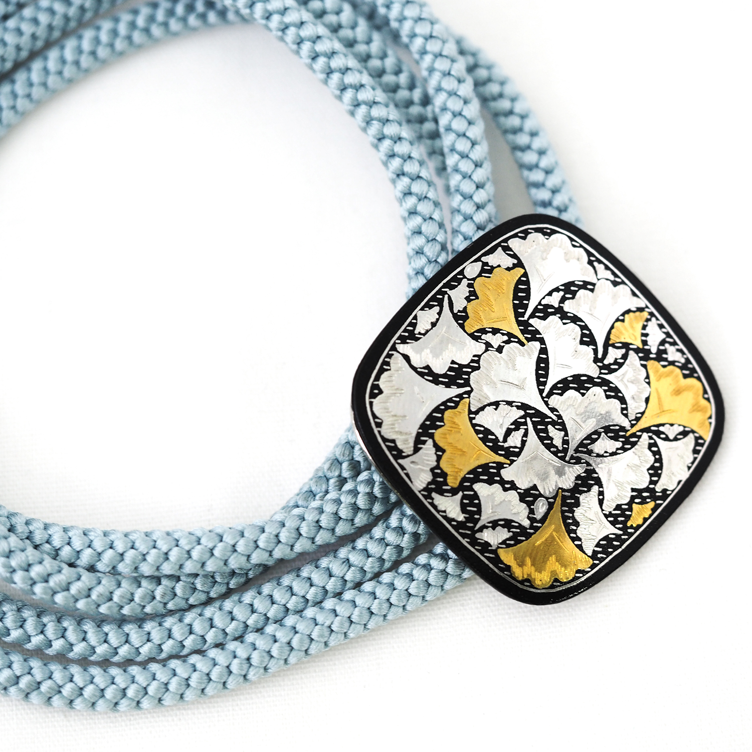 ループタイ 総嵌 菱型大 銀杏(Mix)